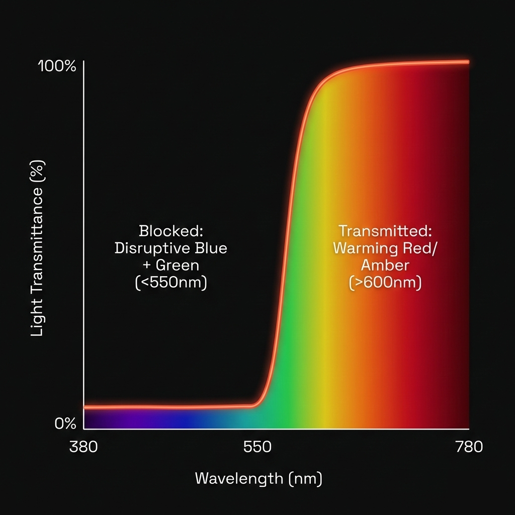 - Block blue + green wavelengths for natural melatonin boost